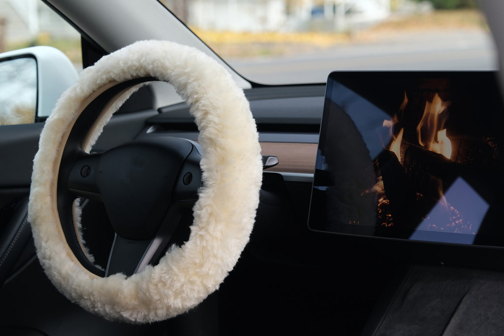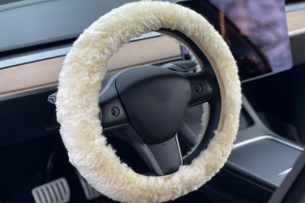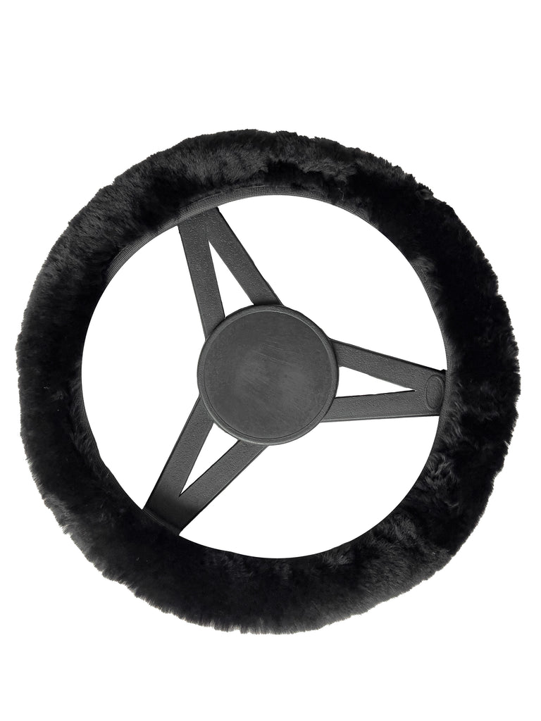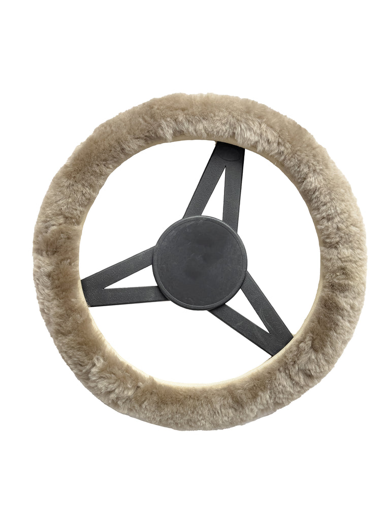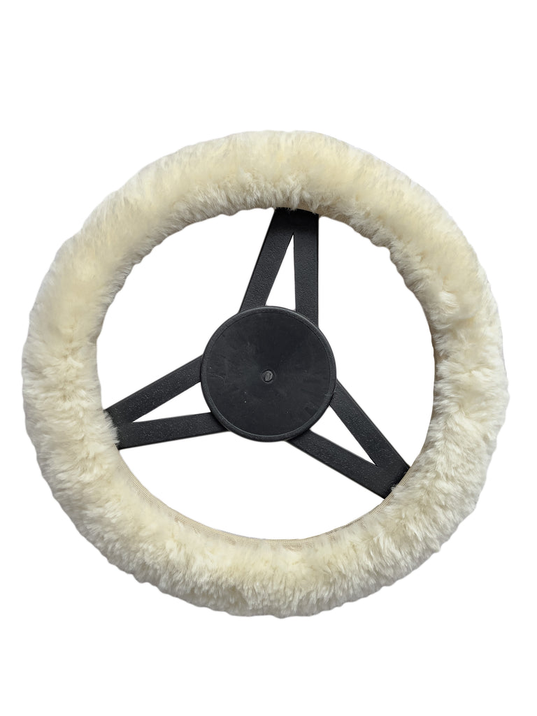 Indulge your hands and upgrade your vehicle and comfort with a real Sheepskin Steering Wheel Cover. 100% New Zealand sheepskin wool, Suede backing. Year-Round comfort and insulation from hot and cold weather. Universal fit with elastics on both sides, approximately 14"-16" in diameter